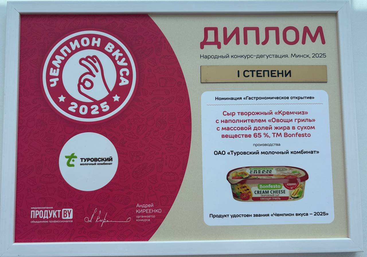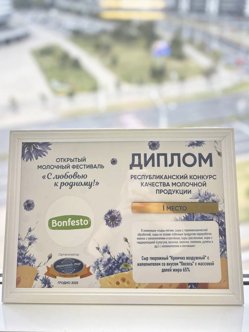 Номинация «Новинка года» в конкурсе «Лучшие товары Республики Беларусь 2022» за Кремчиз Bonfesto.